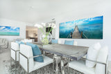 Chromaluxe Metal Prints: These prints represent a new medium in photographic printing. Using a specialty process, we sublimate ink directly into a sheet of light reflective Chromaluxe aluminum. Due to the luminescence of the metal surface, the finished product has a brightness, vibrancy, and a clarity to it that cannot be rivaled with any other printing technique. Chromaluxe prints are so luminous, that they almost appear backlit. In addition to the striking finish, metal prints are guaranteed to last for a century without noticeable fading, are scratch resistant, waterproof, and all come with sleek aluminum hanging hardware on the back of the print for seamless hanging. The final piece will hang an inch and a half away from the wall. Chromaluxe prints represent the best quality prints in the industry and are the perfect modern art piece for any home.
