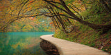 Plitvice National Park, Croatia - There are sixteen emerald lakes, each connected by dozens of waterfalls that fill Plitvice National Park. So much of the park is covered in water, that these raised wooden boardwalks are the only way to hike through the park. I loved the way the autumn trees framed this rustic winding path on a beautiful fall day.
